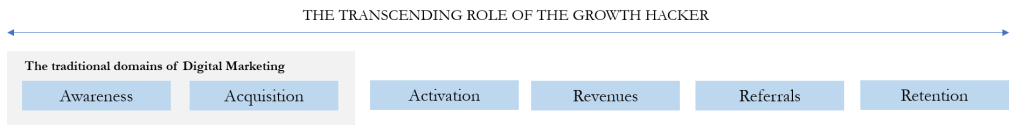 The growth hackers need to work in close conjunction with the marketing team, with somewhat blurred boundaries on where responsibilities start and end respectively.